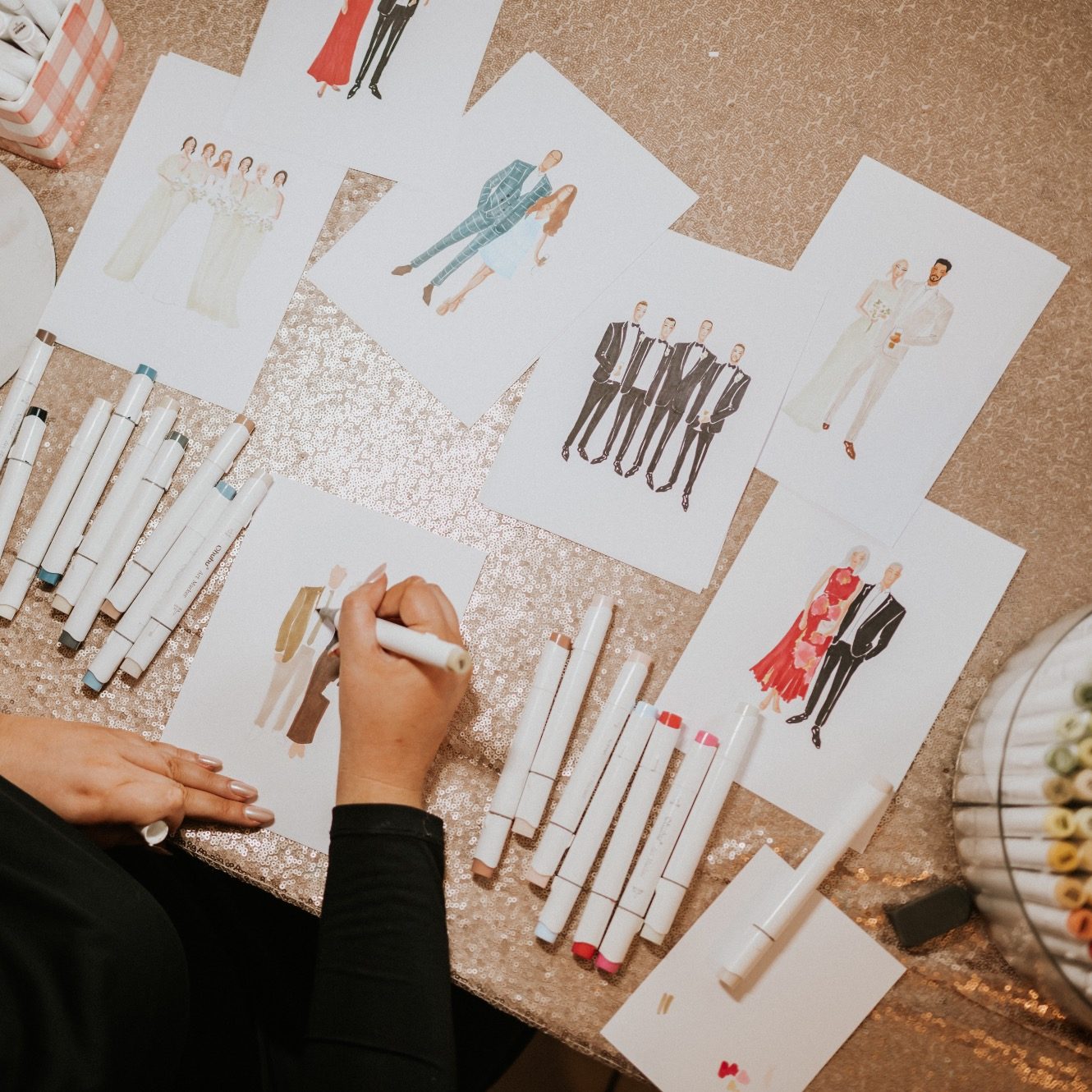 I’m Tasha, an artist specialising in luxury, high-detail live illustrations for weddings and events. I also create personalised commissioned portraits, designed to capture life’s most meaningful moments and become timeless, heartfelt gifts.